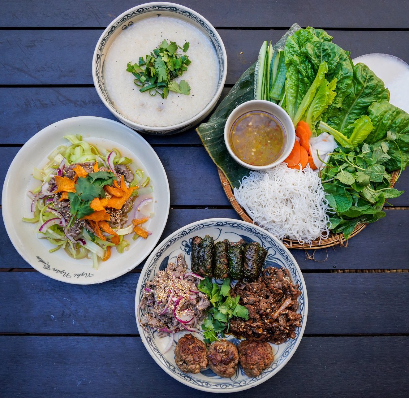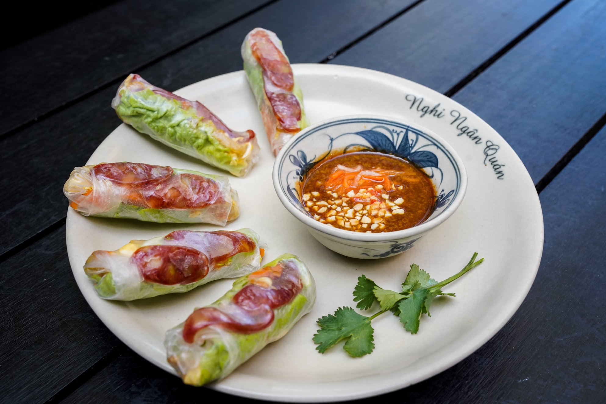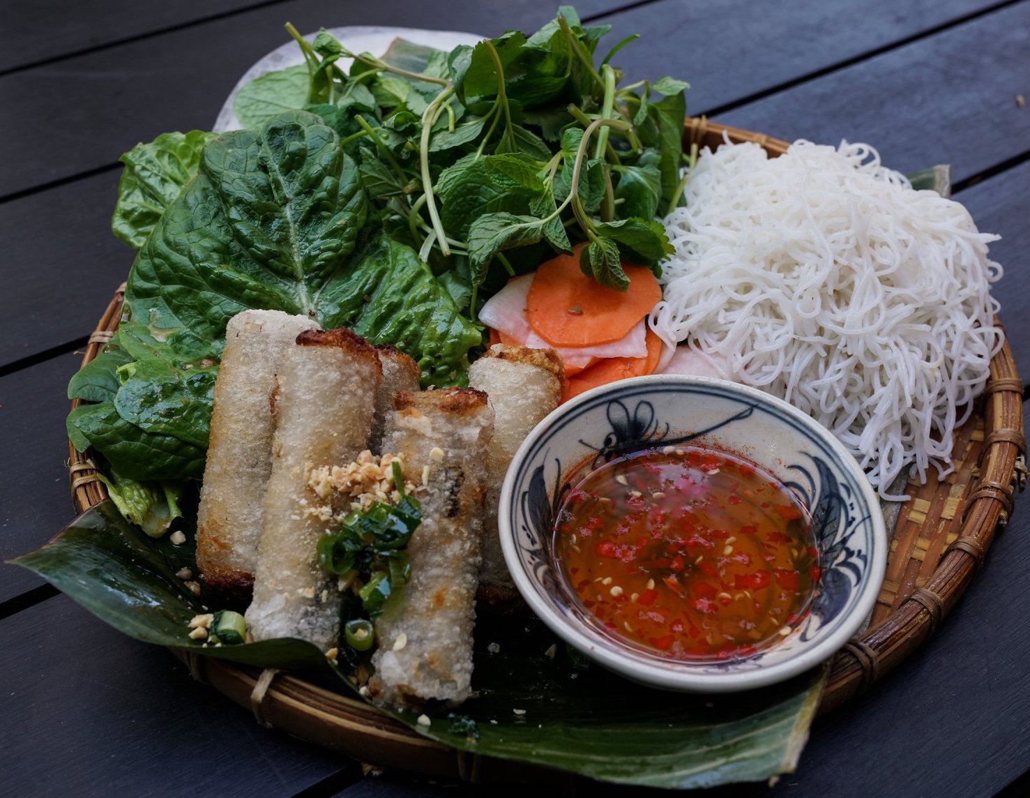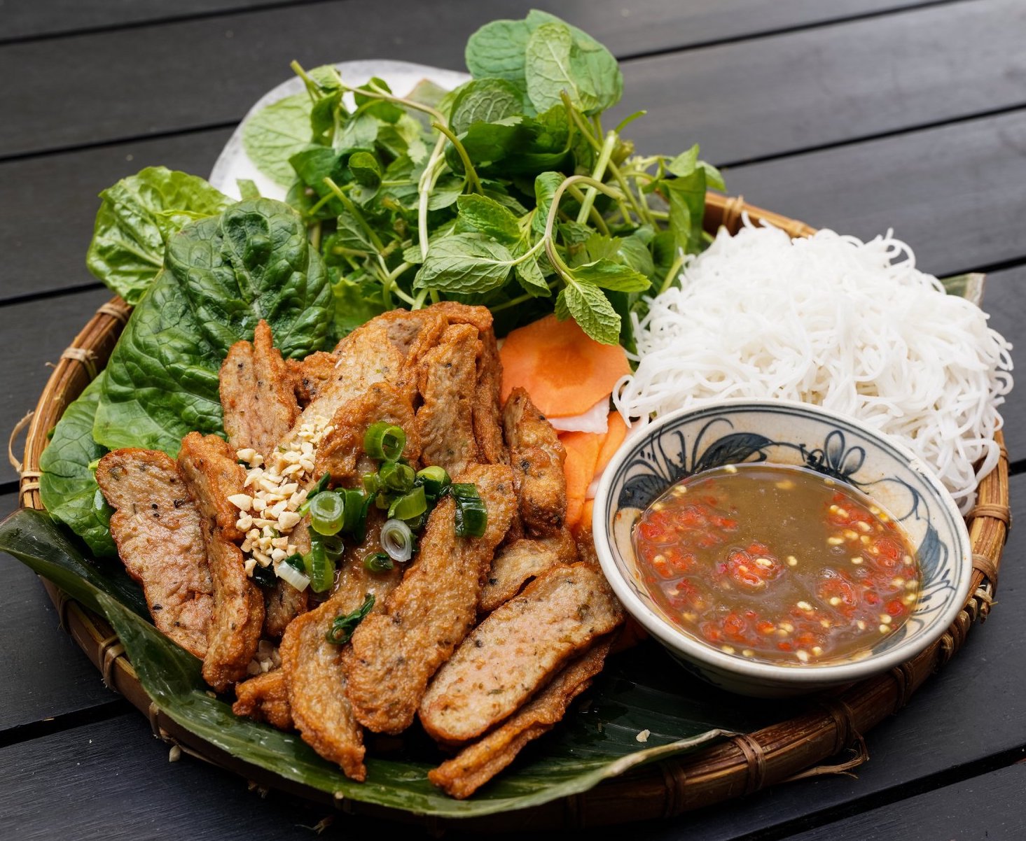 Available only during 09:30 am - 09:30 amPlatters filled with lettuce, rice-paper, green herbs, cucumber & our traditional peanut dipping sauce or mam nem dipping sauce that made of fermented anchovi