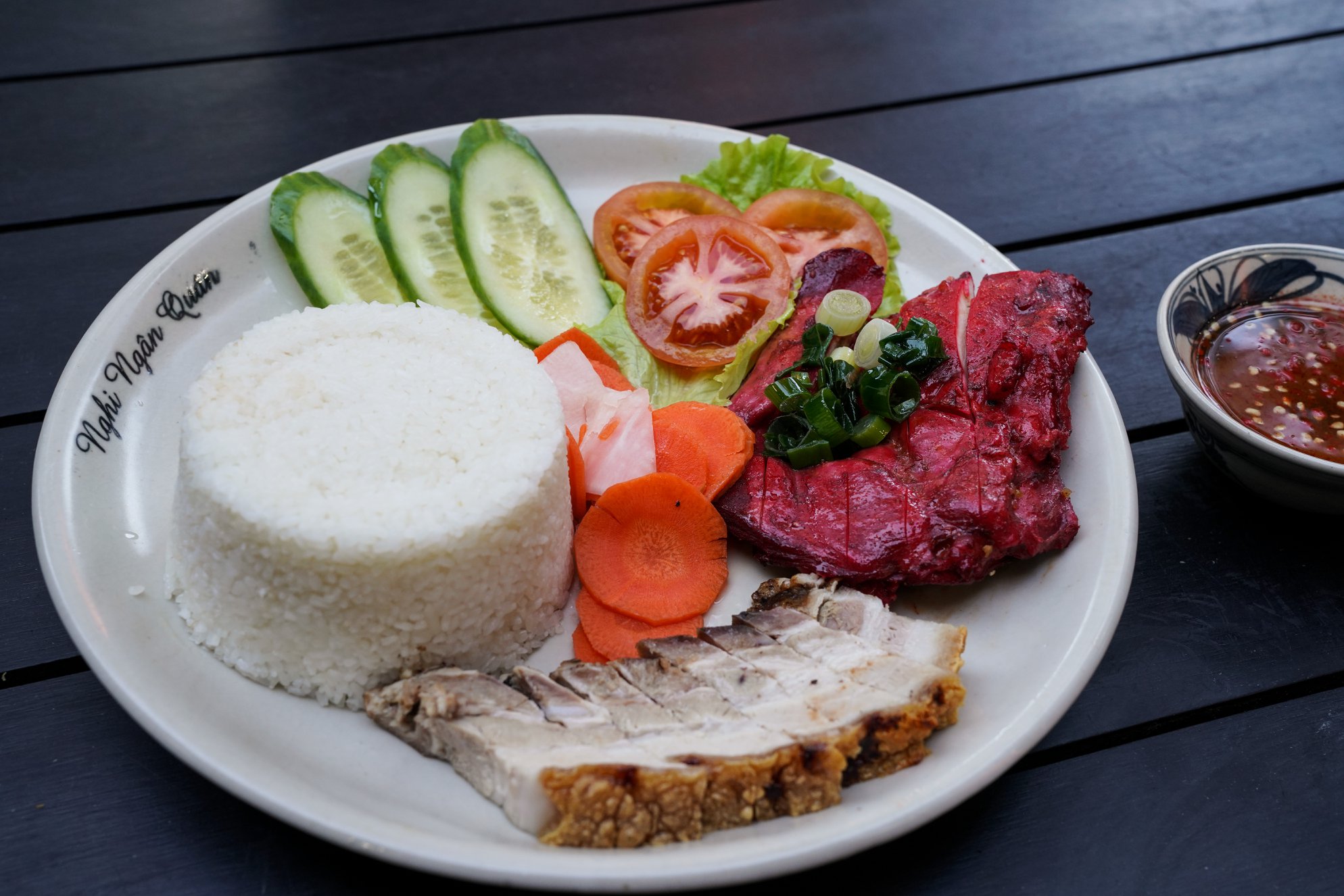 CƠM TẤM GÀ XÁ XÍU HEO QUAY - (Broken Rice with Red BBQ Chicken and Roast Pork)$15.00