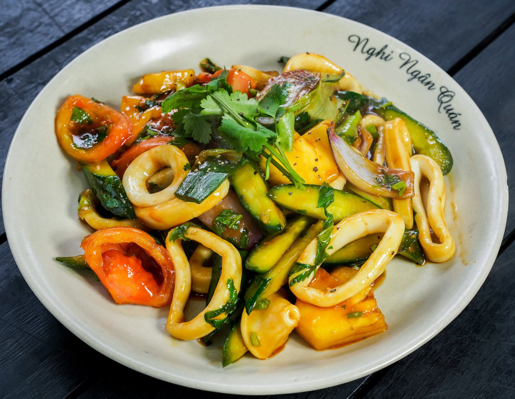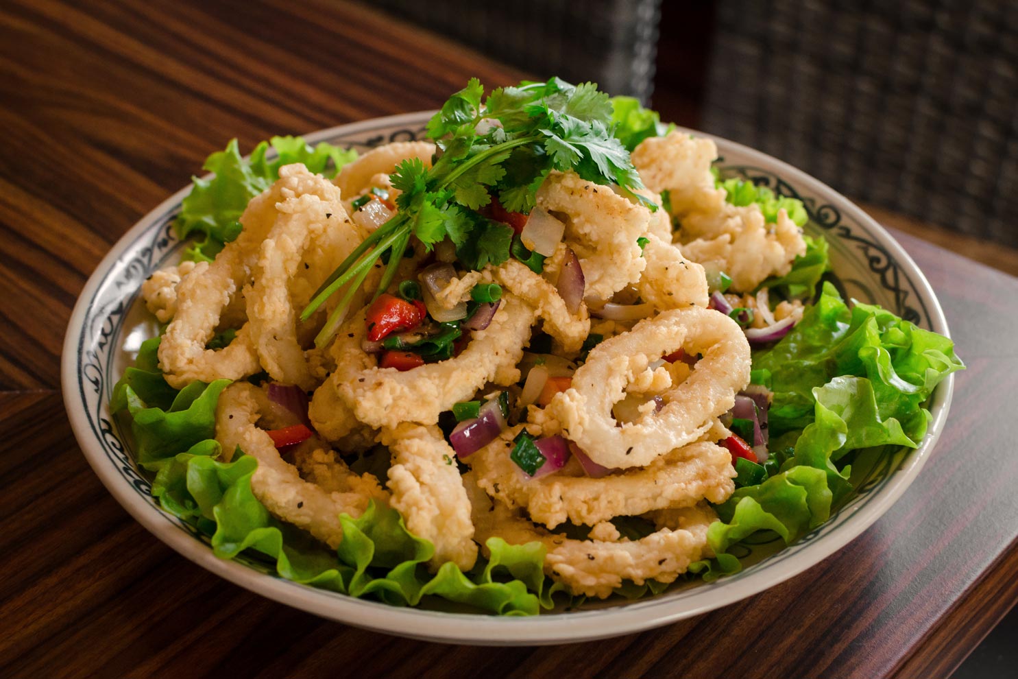 GỎI THÁI - (Thai Style Salad) (GF) (VOE/VEO)$19.00Beef or Squid, cucumber, celery, red onion, chilli, pineapple & sesame