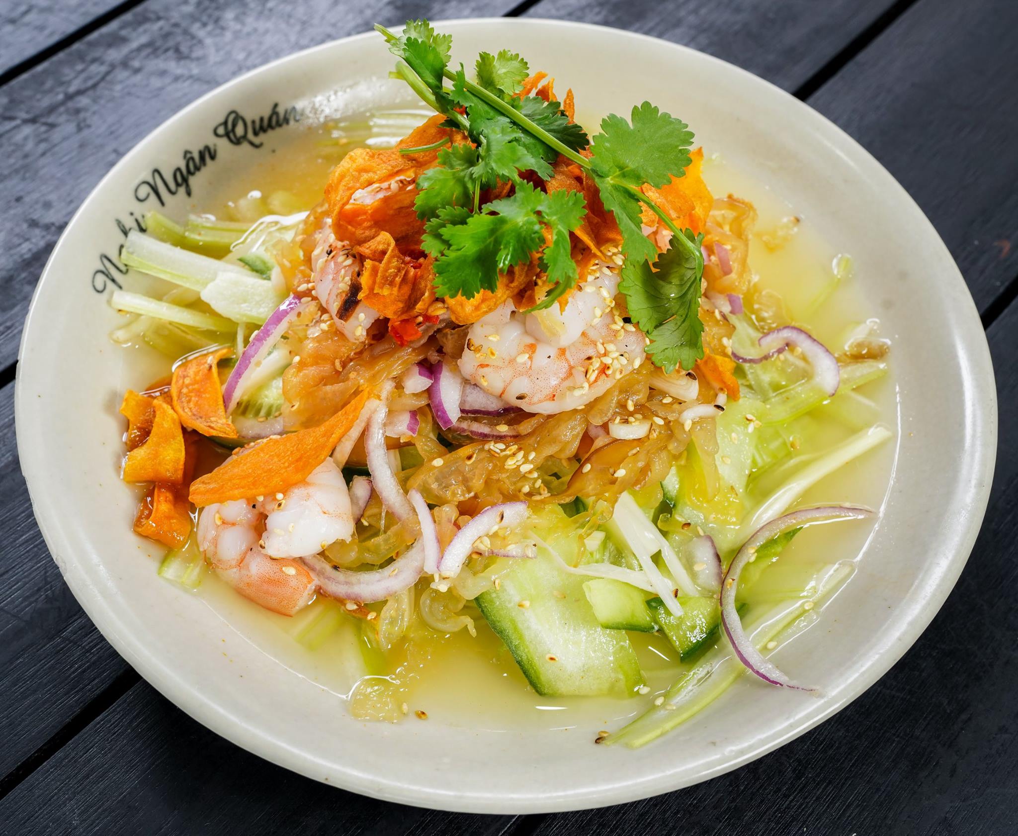 GỎI TÔM SỨA NGÓ SEN - (Prawn Jellyfish and Lotus Root)(GF) (VOE/VEO)$19.00cucumber, celery, red onion, chilli, pineapple & sesame