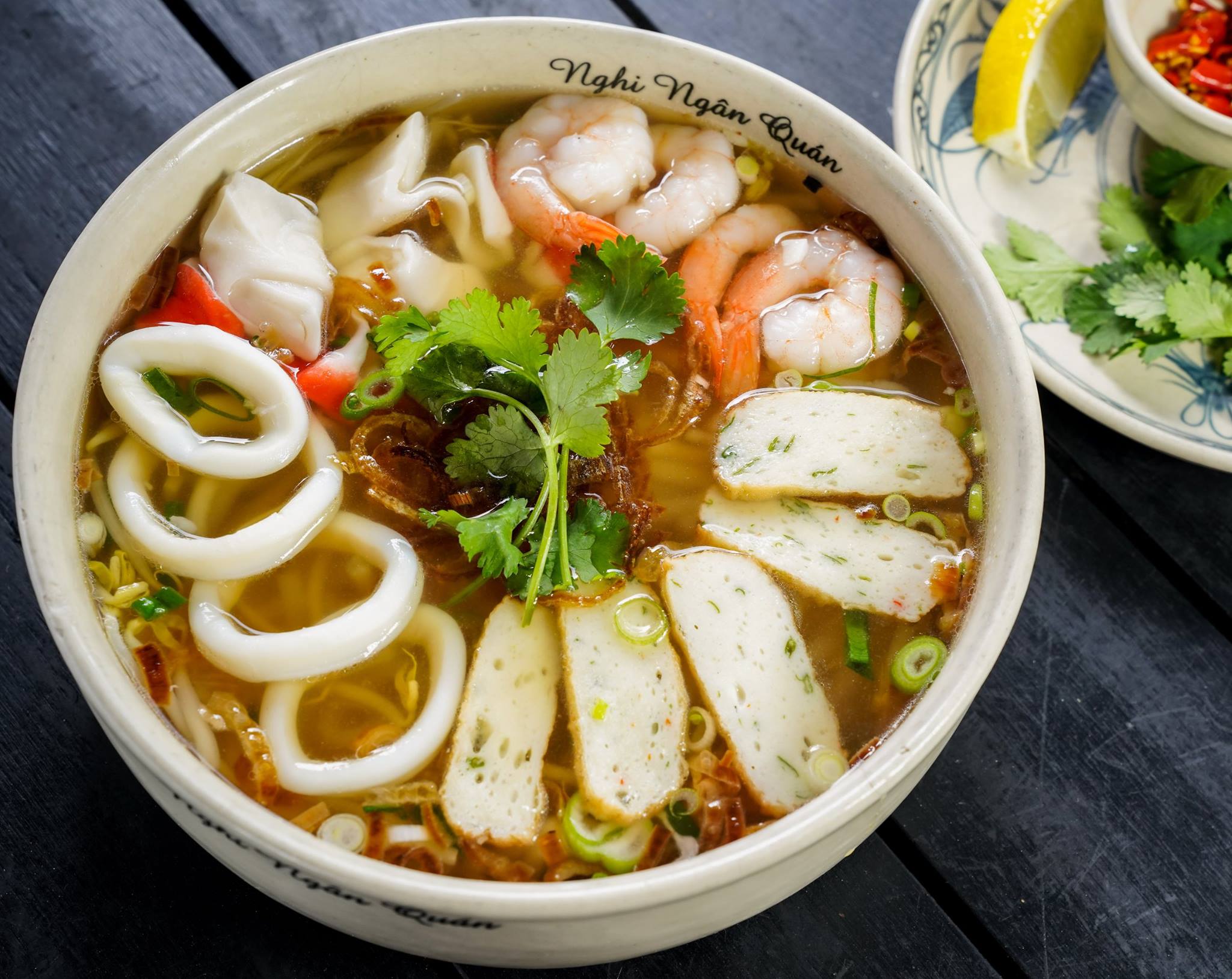 (LARGE) Nam Vang - (Phnom Penh Noodle Soup)$15.00pork slices, minced pork, prawns, squid, quail eggs in a chicken broth