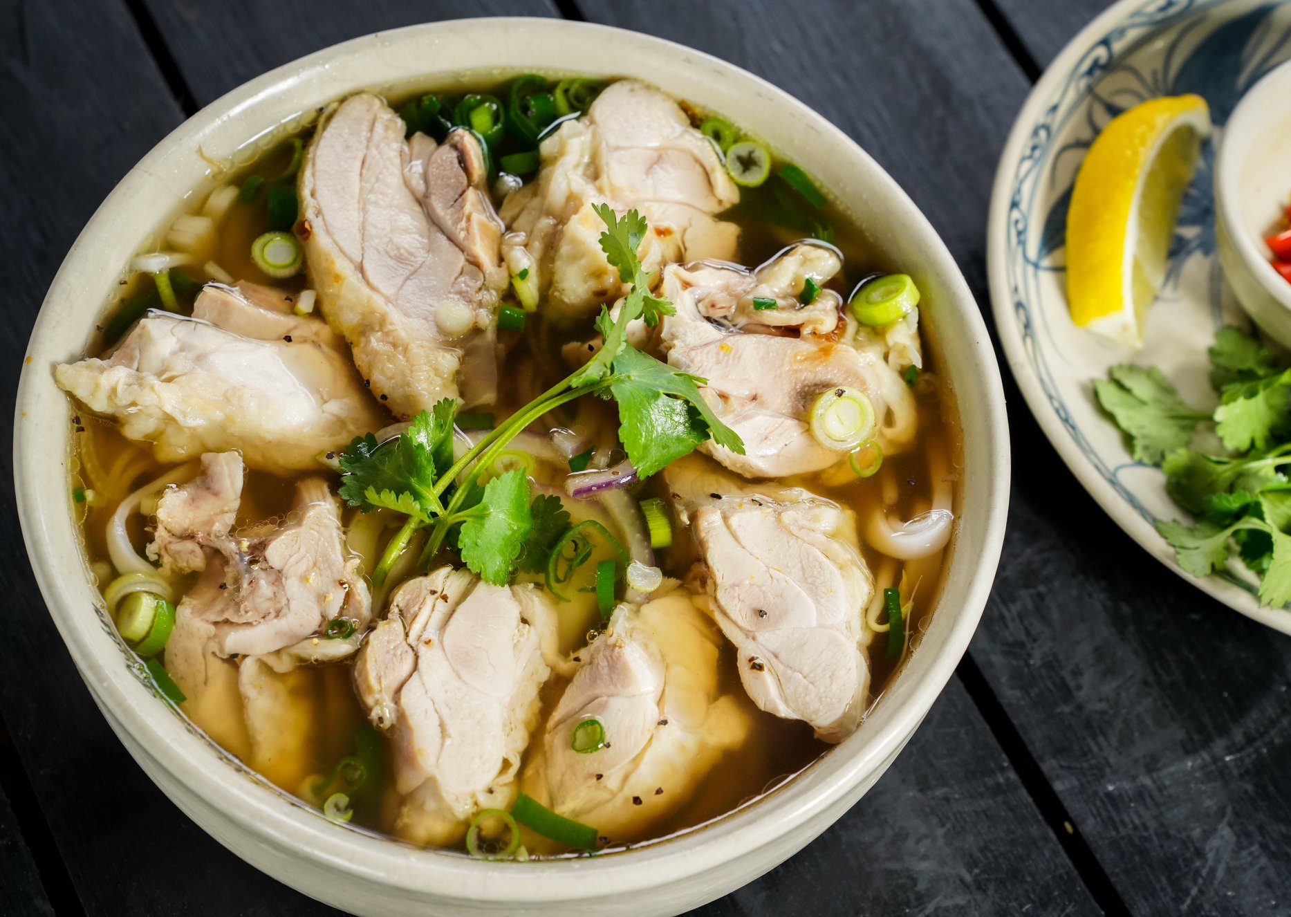 (LARGE) Pho Ga - (Chicken Noodle Soup)$15.00fresh rice noodles, cooked beansprouts, thick chicken slices in an aromatic beef broth